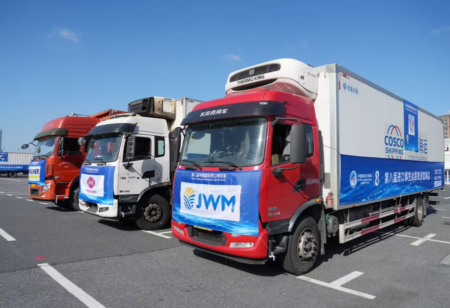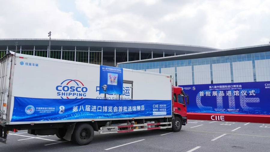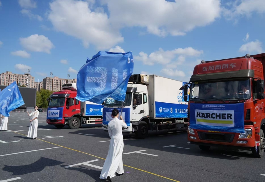 今天上午,6辆搭载着第八届进博会首批进馆展品的载重卡车缓缓驶入国家会展中心(上海)北广场,标志着本届进博会展馆搭建和布展工作进入冲刺阶段,预计将在11月3日基本完成搭建和布展工作。